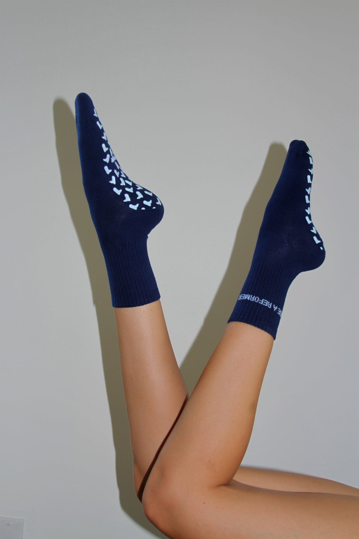 Crafted in a rich navy blue with custom light blue cowboy boot grips on the bottom, these socks combine playful Western flair with serious studio function. We’ve added extra grip coverage for enhanced stability on the reformer, and refined the fit so they hug your feet just right—no more slipping, bunching, or sizing frustration.