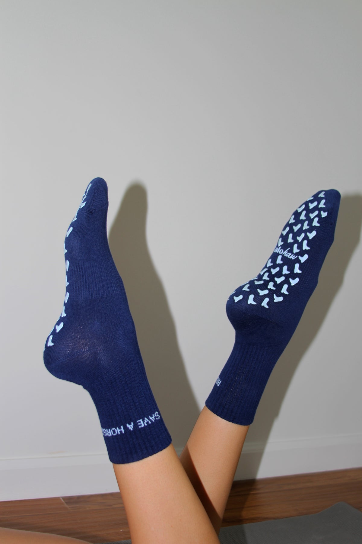 Step into your next Pilates session with serious style and upgraded performance. Our newly improved alohaw Pilates socks are back with one of our favorite slogans... Save a Horse, Ride a Reformer.